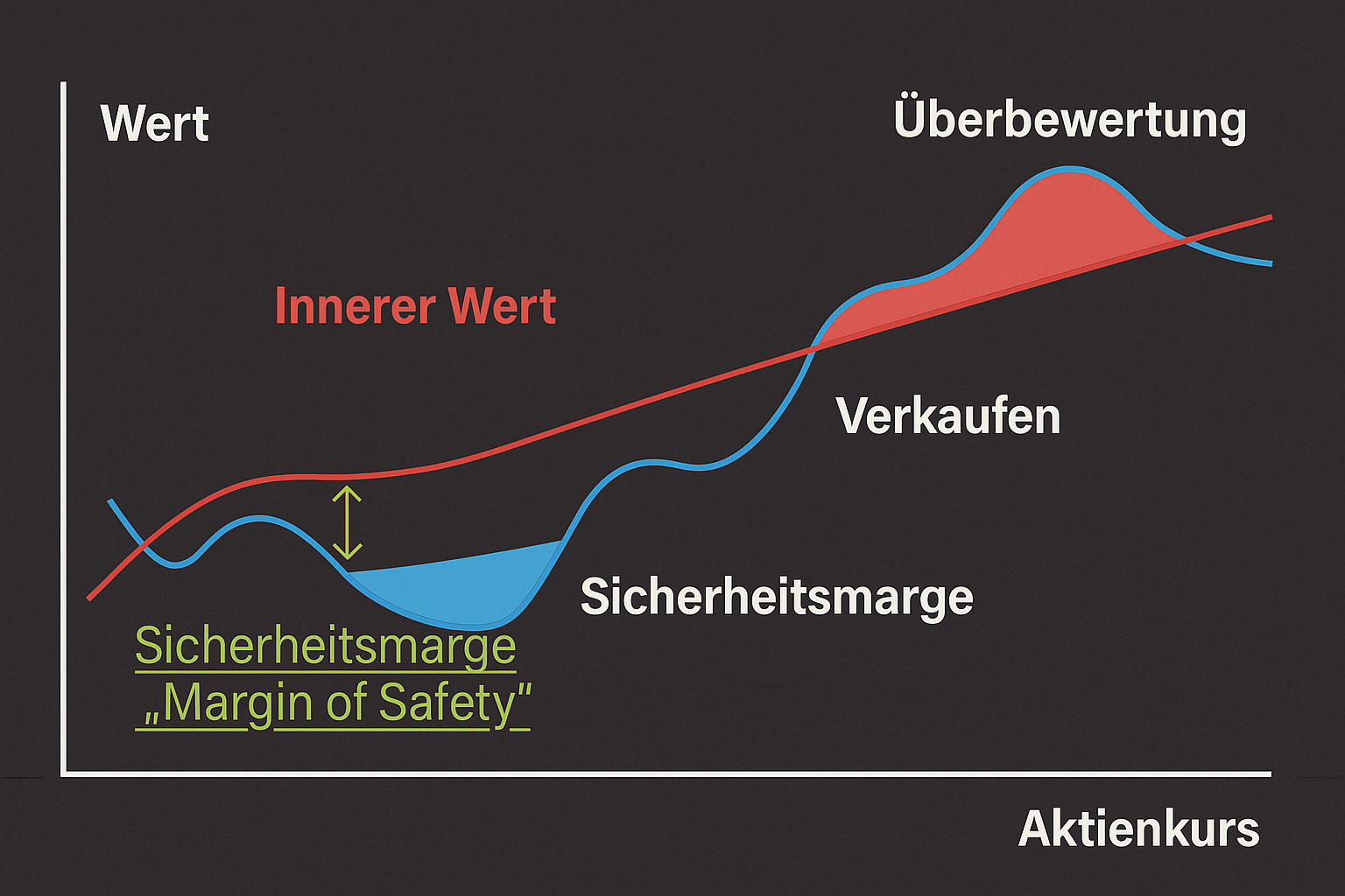 Ein zentrales Element des Value Investing ist die sogenannte Margin of Safety. Sie besagt: Kaufen Sie nur dann, wenn der Börsenkurs mindestens rund 30 Prozent unter dem inneren Wert liegt. Dieser Abschlag ist ein Schutzmechanismus. Selbst wenn man sich in der Bewertung irrt oder die Märkte kurzfristig gegen einen laufen, bleibt ein Sicherheitspuffer bestehen.