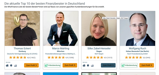 WhoFinance bietet Interessenten bis heute die Möglichkeit, sich anhand echter Kundenbewertungen einen passenden Finanzberater auszusuchen. Für Berater wiederum ist es eine wertvolle Rückmeldung zur eigenen Arbeit.